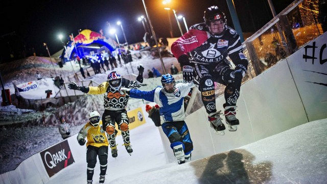 Лучшие райдеры сражались за победу бок о бок на трассе протяженностью 469 м. Вдоль трассы выстроилась огромная толпа болельщиков, которые восторженно приветствовали спортсменов. В ходе состязаний на ледовой трассе, изобилующей трамплинами, перепадами высот и крутыми поворотами, участники стартуют по четверо, развивая скорость до 50 км/час.