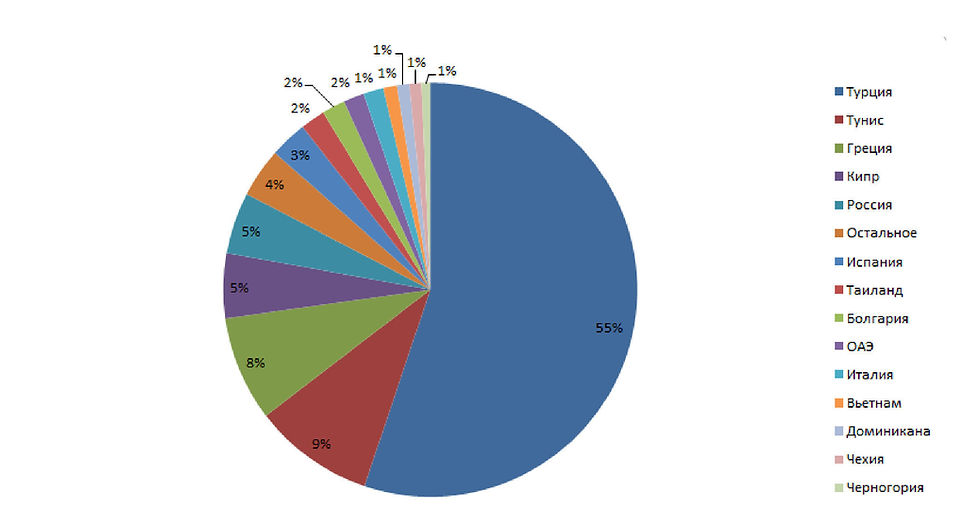 По сравнению с прошлым годом предпочтения отдыхающих изменились: в 2017 году интерес к Турции был ниже, а вот к российским курортам — значительно выше. При этом Тунис проигрывал и Греции, и Кипру.