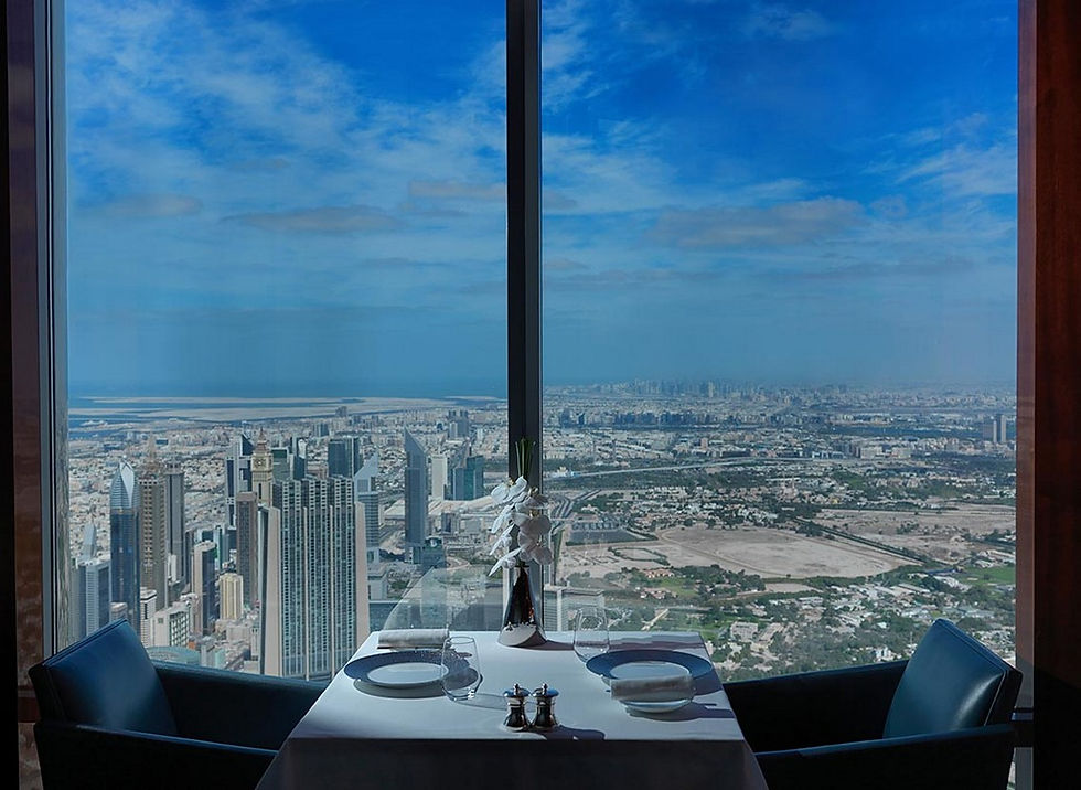 Еще можно в буквальном смысле оказаться на ужине «на седьмом небе», забронировав столик в ресторане At.mosphere Restaurant and Lounge на 122 этаже небоскреба, или проведя ночь в единственном в своем роде отеле Armani Hotel.