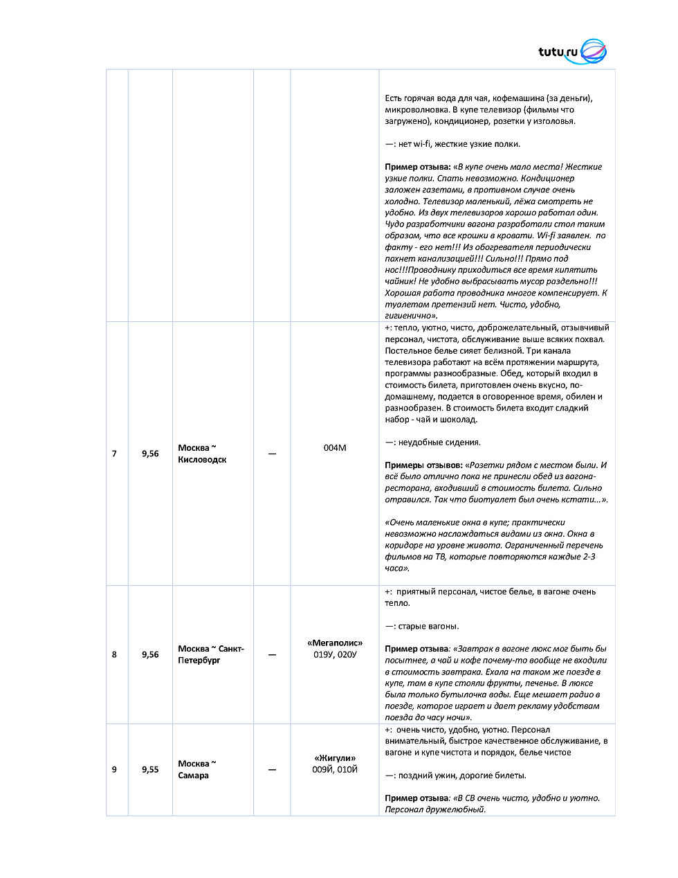 Большая часть негатива в отзывах о поездах из топ-10 опять же связана с доступом к интернету. Другие причины расстройства пассажиров – невкусная еда, неудобные спальные места, плохая шумоизоляция в купе (слышно чихание соседей), холод от кондиционера и несмолкаемое радио в ночные часы.